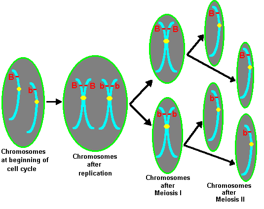 A type of cell division that produces haploid gametes. The image below shows the very basic steps of meiosis and it's products.