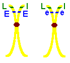 A pair of chromosomes in the same individual that carry the same type of information (eye color) but not necessarily the same alleles (blue or brown). One of these "homologs" comes from the individual's mother and one from the father.